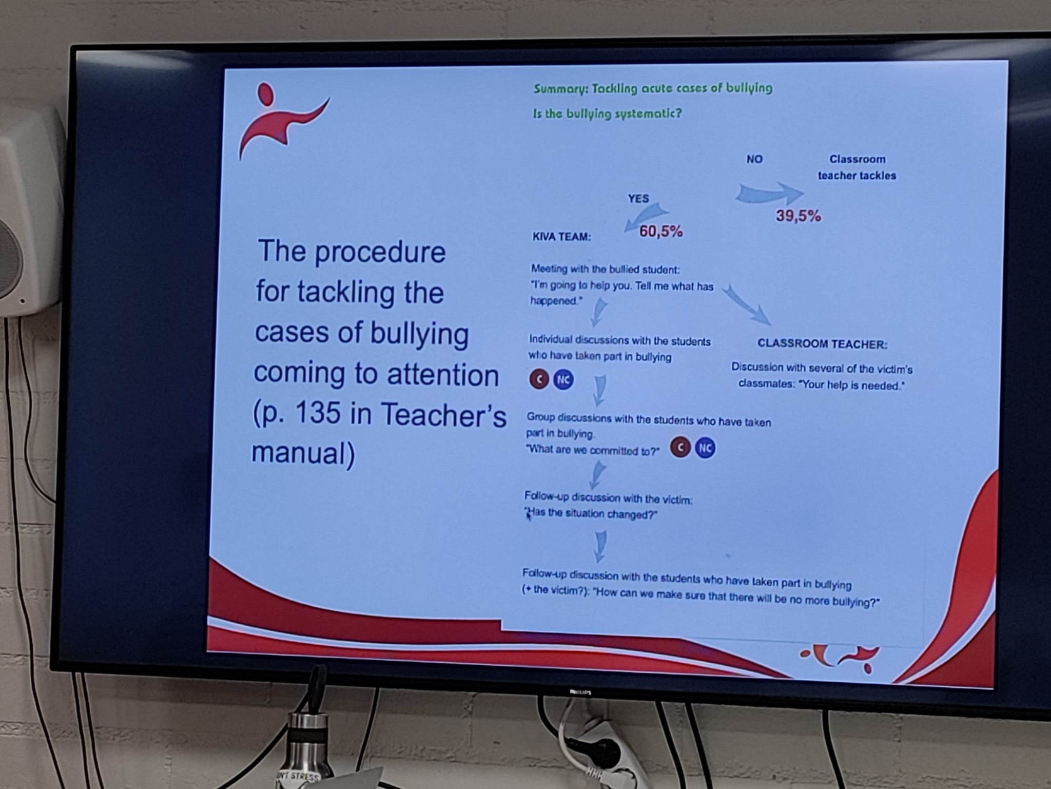 Forms of bullying in schools: Educators shared experiences of bullying at their own schools and discussed current strategies for handling these cases. This exchange, helped teachers compare their approaches to the three stages of the KiVa program: prevention, intervention, and monitoring.